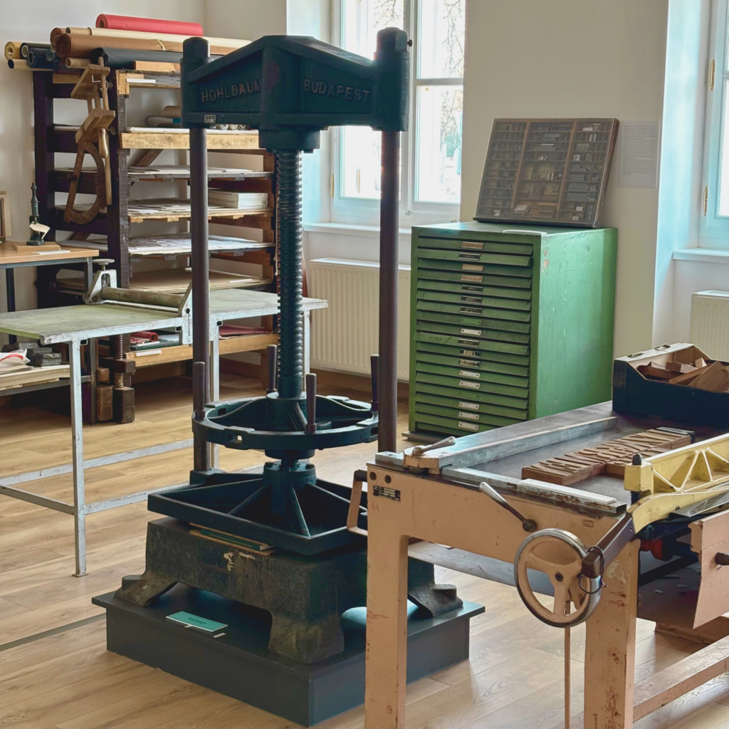 Lili a T25 Művészeti Galéria kiállítását járta, de a legjobban a régi nyomdászati részleg varázsolta el. A hatalmas betűszedő gépek és a tinta illata között egyszer csak megakadt a szeme valamin. Egy poros polcon, a betűsablonok mögött egy különleges, kopott piros bőrkötésű könyv bújt meg.